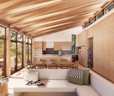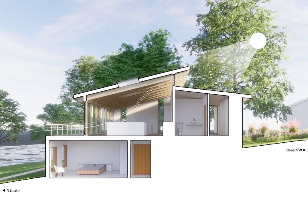 The Welcome Home is a net-zero lakefront home designed with aging-in-place principles for a retiring couple. The house also includes an attached dwelling unit on the lower level that can be partitioned for temporary rental, or connected together when family comes to stay.