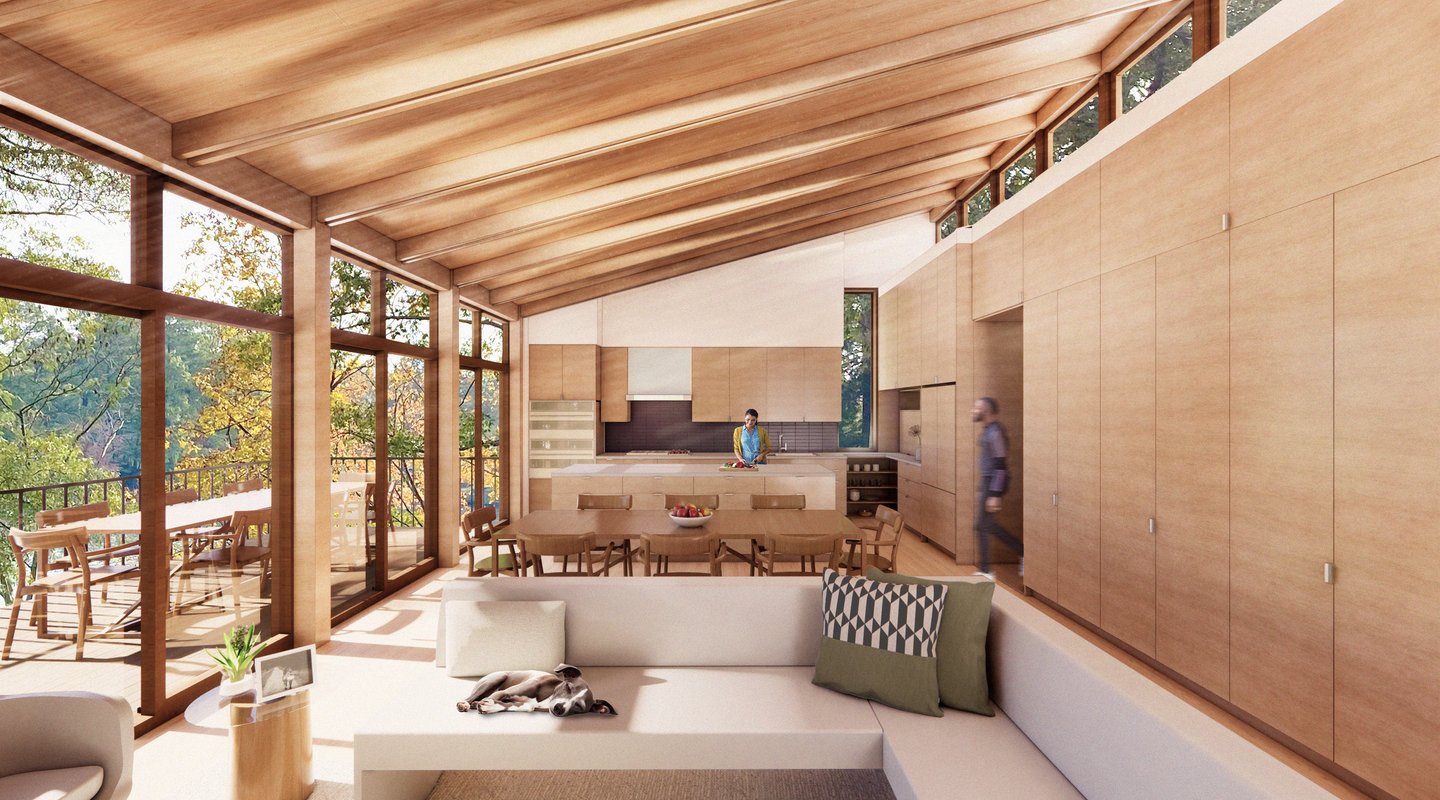 Carefully considered fenestration and orientation welcomes the sun in and frames views out to the water. A street-facing front garden welcomes the neighbors to stop by and chat on weekend walks. And most importantly, the home welcomes family of all generations to enjoy the lake, the trees, and each other.
