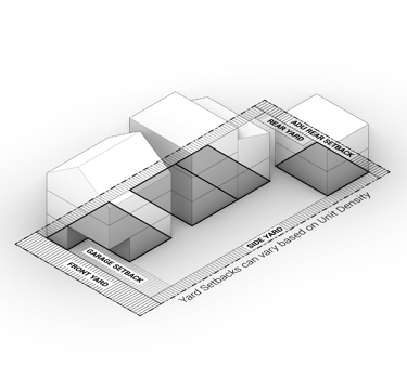 Stacked Flats: Up to 1 unit per 600 SF of Lot Area