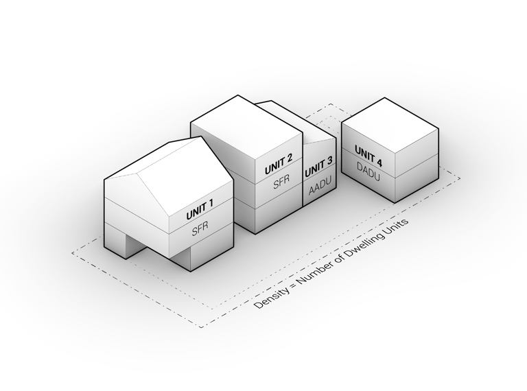 Both Primary Dwelling Units and Accessory Dwelling Units count toward density limits
